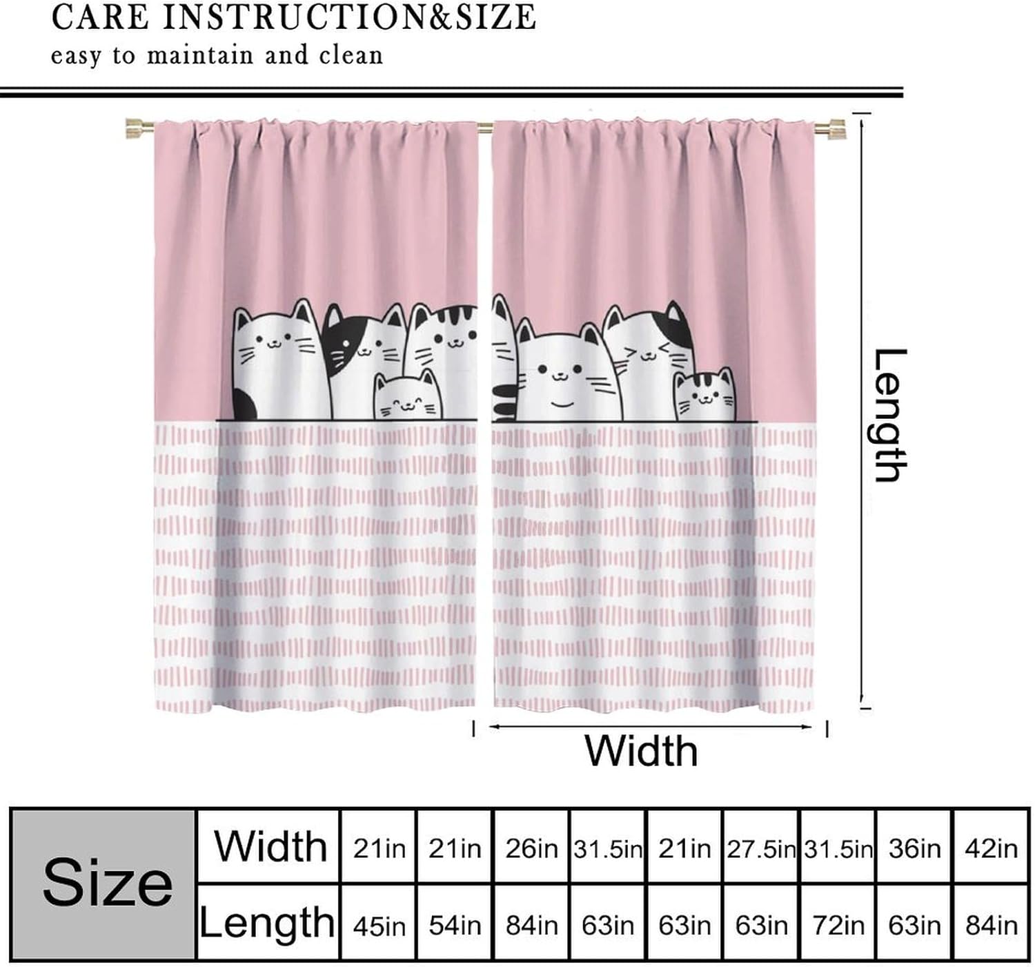 Our curtains are made from high quality polyester fabric that is soft and smooth to the touch. We have high quality printing technology with vibrant colours and clear patterns.Curtain sizes (2 panels per set of curtains)42×63in=21×63in+21×63in55×63in=27.5×63in+27.5×63in63×63in=31.5×63in+31.5×63in63×72in=31.5×72in+31.5×72in72×63in=36×63in+36×63in84×84in=42×84in+42×84in42×45in=21×45in+21×45in42×54in=21×54in+21×54in52×84in=26×84in+26×84in✦NotePlease allow 0.4-0.8in (1-2cm) deviation, due to manual measurement.Due to differences in computers and monitors, there may be slight colour differences between the actual product and the photos.Please do not wash them together with other items.